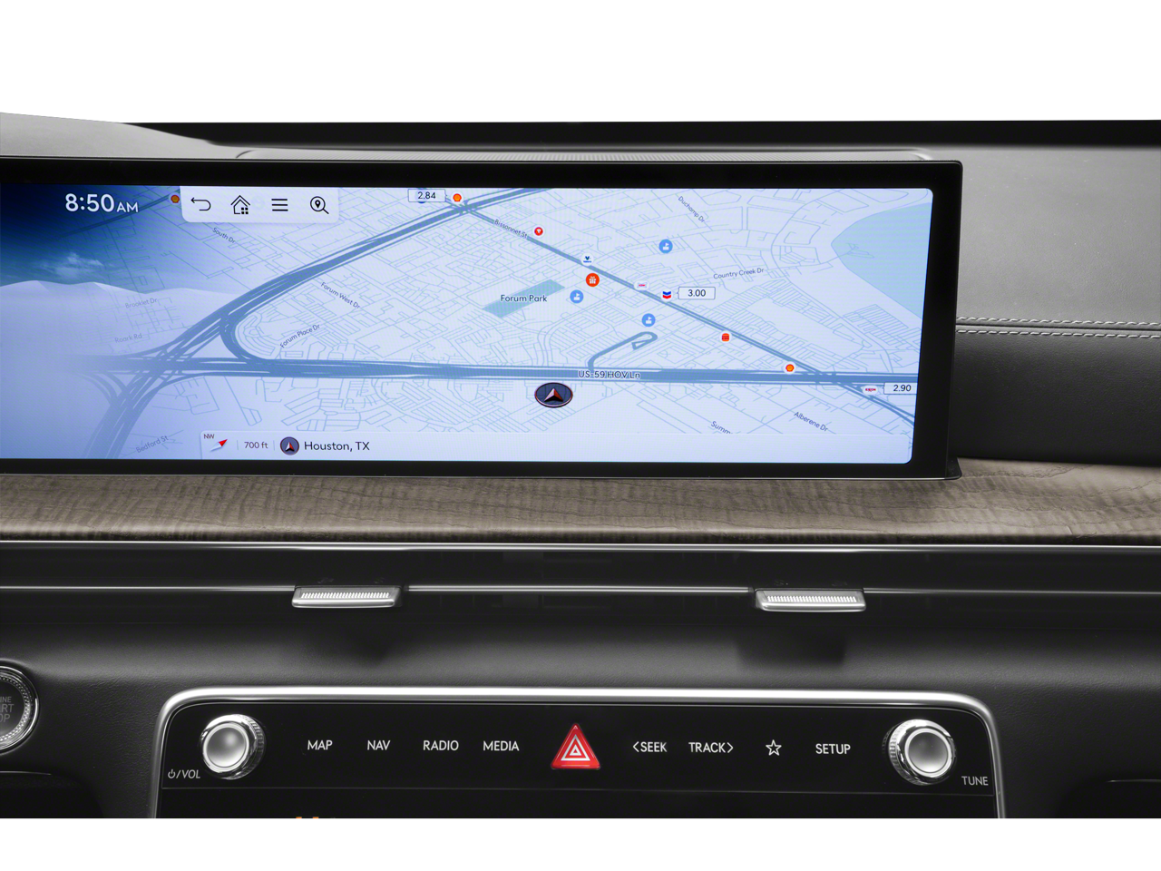 - Radio: AM/FM/HD Bang & Olufsen Sound System -inc: 1400 watts, 18 speakers, 14 channel amplifier, 27" integrated OLED instrument cluster and navigation system, SiriusXM Radio w/90-day subscription (not available in AK or HI), cloud connected platform (cloud profiles, connected routing, dynamic voice recognition, OTA updates), wireless Apple CarPlay, wireless Android Auto, Bluetooth® hands-free phone system w/audio streaming, wireless phone charger, Wi-Fi hotspot, steering wheel controls, USB and Genesis Connected Services