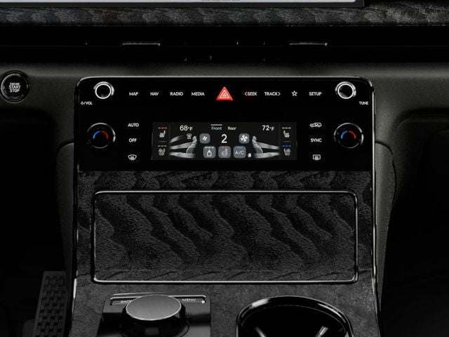 • Radio: AM/FM/HD Bang & Olufsen Sound System -inc: 1400 watts, 18 speakers, 14 channel amplifier, 27" integrated OLED instrument cluster and navigation system, SiriusXM Radio w/90-day subscription (not available in AK or HI), cloud connected platform (cloud profiles, connected routing, dynamic voice recognition, OTA updates), wireless Apple CarPlay, wireless Android Auto, Bluetooth® hands-free phone system w/audio streaming, wireless phone charger, Wi-Fi hotspot, steering wheel controls, USB, Genesis Connected Services, black anodized aluminum speaker grilles and Prestige Black-exclusive infotainment welcome screen/theme