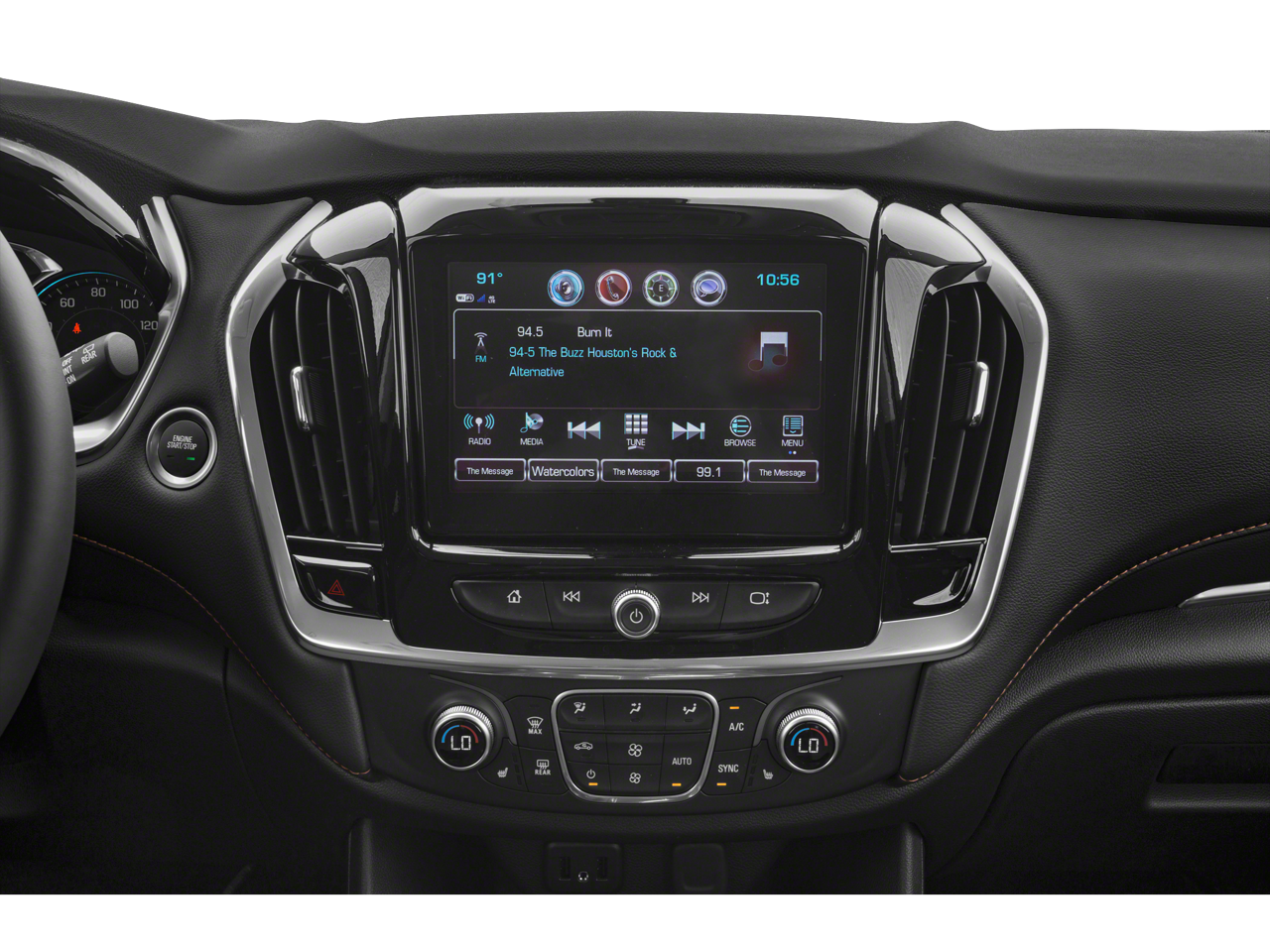 - Audio system, Chevrolet Infotainment 3 system 7" diagonal color touchscreen, AM/FM stereo. Additional features for compatible phones include: Bluetooth audio streaming for 2 active devices, voice command pass-through to phone, Apple CarPlay and Android Auto capable (FWD only.)