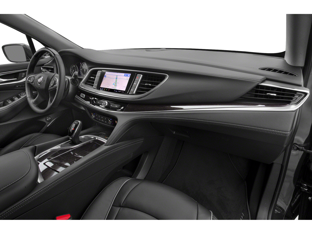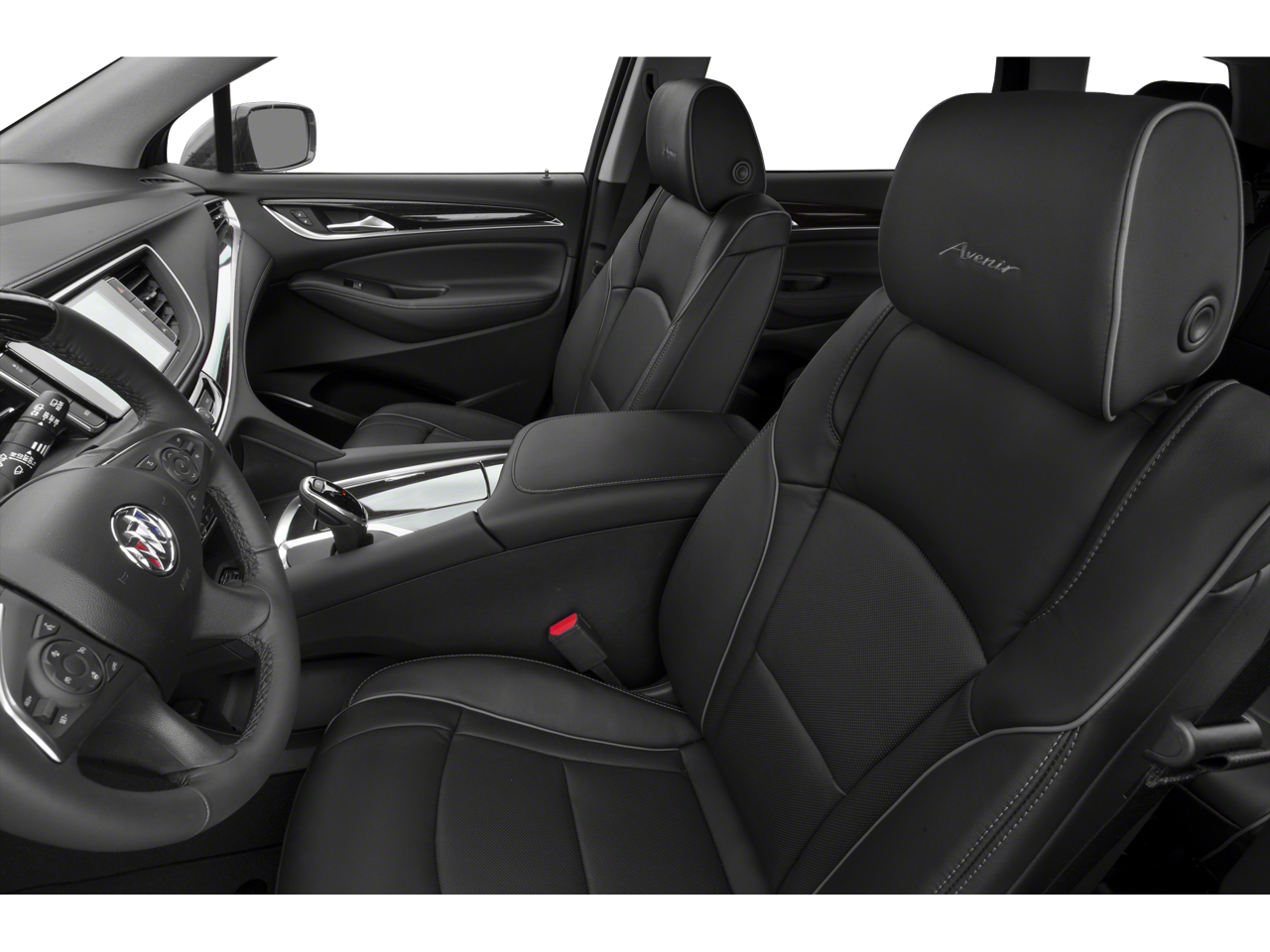 - Avenir Package Premium Package content plus: unique upper and lower grilles, wheels and front door badging; unique Chestnut/Ebony or Ebony interior color including seat stitching and piping; Avenir embroidered headrests and floor mats; bold script sill plates on all four doors; premium film decor accents; wood steering wheel; Buick Infotainment with Navigation; Wireless Charging; power dual moonroof with fixed rear skylight; 8" reconfigurable Driver Information Center; HD Surround Vision with full display Rear Camera Mirror and 6 exterior colors [White Frost Tricoat, Satin Steel Metallic, Dark Slate Metallic, Ebony Twilight Metallic and Rich Garnet Metallic]