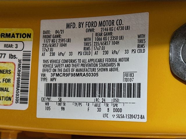 Indulge in the premium features that set this Bronco Sport First Edition apart, including a Bang & Olufsen sound system, SYNC 3 communications and entertainment system, and a host of advanced safety technologies. Experience the thrill of four-wheel-drive handling and the confidence of the independent suspension, traction control, and anti-lock brakes.