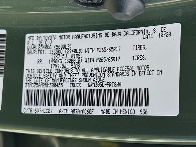 - Vehicle Name: Toyota Tacoma 4WD
