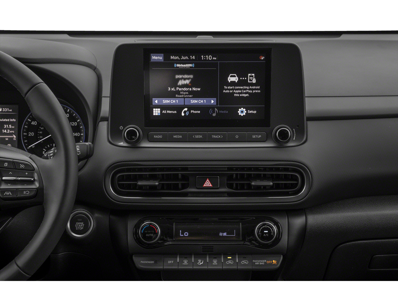 - Radio: AM/FM/HD Radio/SiriusXM Audio System -inc: 4.2" color multi-information display, 8" display audio (low cost display audio) w/6 speakers, wireless Android Auto, Apple CarPlay, supports Siri and Google Now, 1 amp USB data/charge jack, 1 USB charge jack, Bluetooth and Blue Link connected car system