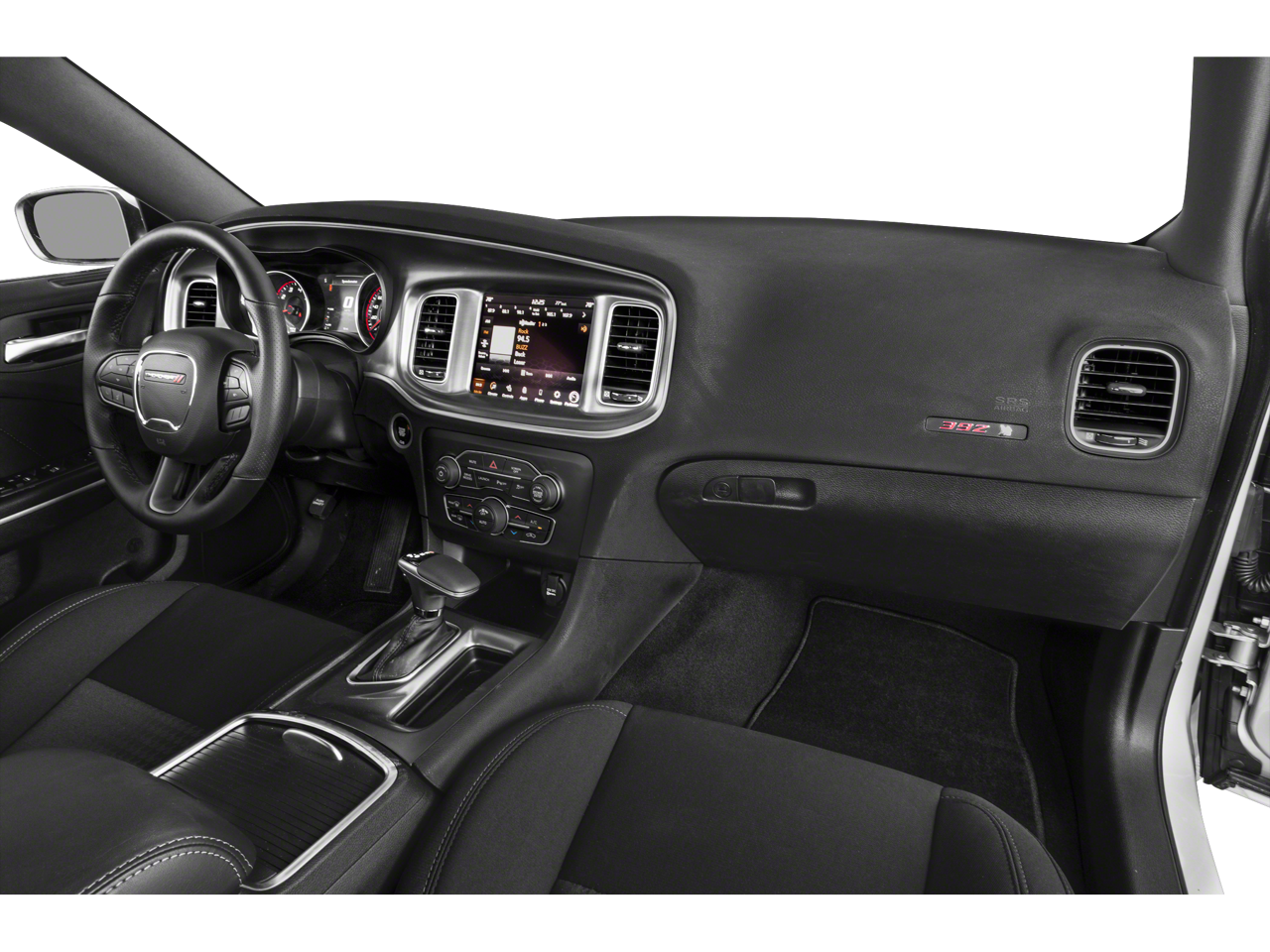Inside, the Charger R/T Scat Pack Widebody pampers you with premium features like a heated steering wheel, heated and ventilated front seats, and a state-of-the-art Uconnect 4C infotainment system with an 8.4-inch touchscreen display. The Scat Pack logo Nappa/Alcantara seats provide exceptional comfort and support, while the flat-bottom steering wheel and performance shift indicator keep you connected to the road.