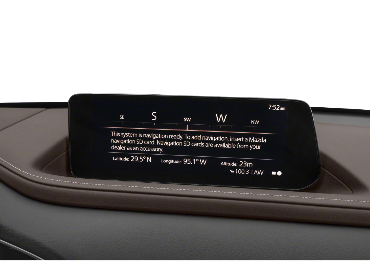 - Radio: AM/FM/HD Audio System w/Mazda Navigation -inc: Bose 12-speakers w/Centerpoint2 and AudioPilot2, 10.25" full-color center display w/touchscreen functionality in AA/CP, Apple CarPlay/Android Auto integration (wireless), Bluetooth hands-free phone and audio capability, off-road navigation function, SiriusXM satellite radio w/3-month trial subscription (not available in AK and HI), SiriusXM 3-year Traffic and Travel Link subscription w/current information for traffic, weather, sports scores, fuel prices and nearby parking or parking by destination, USB Type-C audio inputs (2 ports) and steering wheel-mounted audio controls