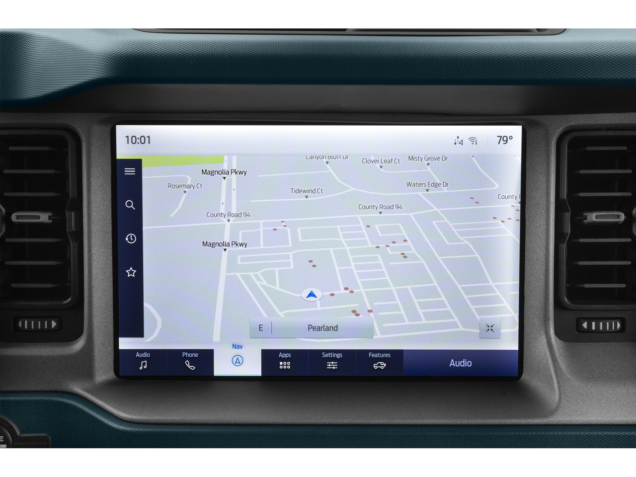 The Outer Banks trim level elevates the Bronco experience with a wealth of premium features. Indulge in the rich sound of the B&O Sound System, stay connected with the SYNC 4 infotainment system, and navigate with ease thanks to the Connected Navigation. For added convenience, you'll appreciate the Wireless Charging Pad, Heated Steering Wheel, and 360-Degree Camera.